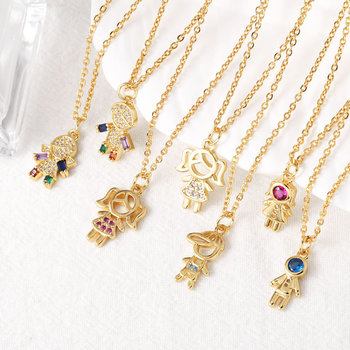 Collar de latón chapado en oro de 18 quilates a la moda con colgantes de dibujos animados de cristal colorido para niño y niña collares con colgante fino para regalo