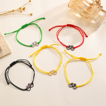 Pulseras de Acero Inoxidable Plateadas con Dijes de Bicicleta Clásicos Personalizables para Niños, con Cordón Negro y Hilo Rojo